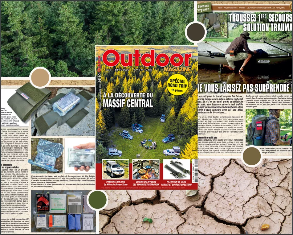 Dans son numéro 10, le magazine français Outdoor 4x4 consacrait à Solutions Trauma et à nos kits un article élogieux de 4 pages.